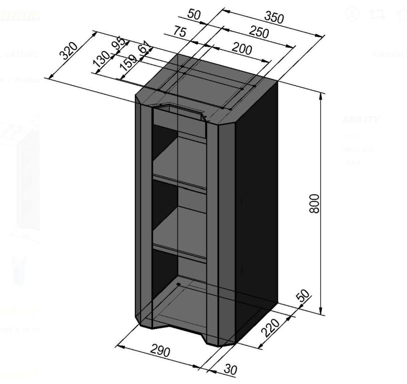 Aluskapp Model K 350x330mm